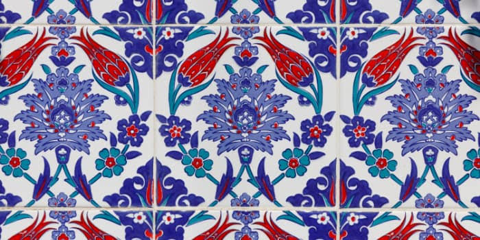 İznik tiles (15th-17th c.) are famed for vivid colors (turquoise, coral-red “İznik red”), quartz-rich clay (durable, luminous), and floral motifs (tulips, carnations) blending Ottoman, Persian, and Byzantine influences.